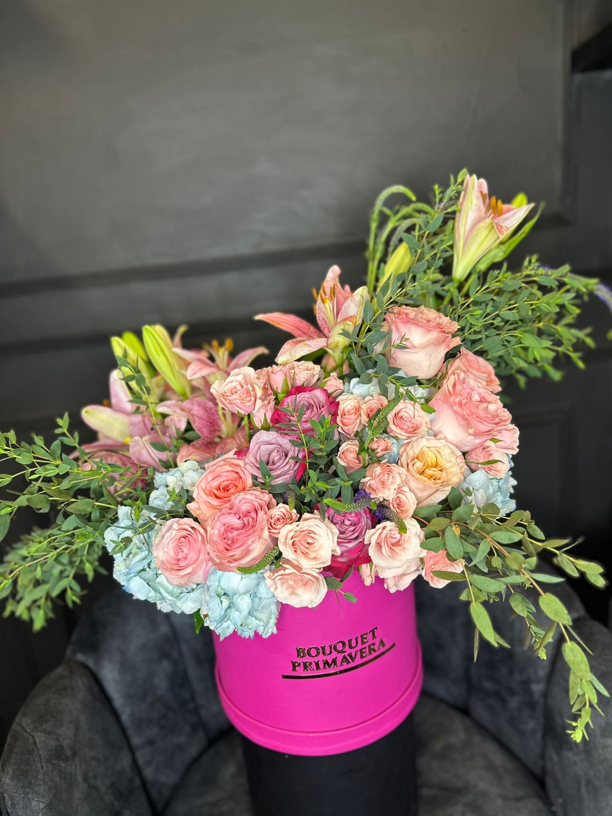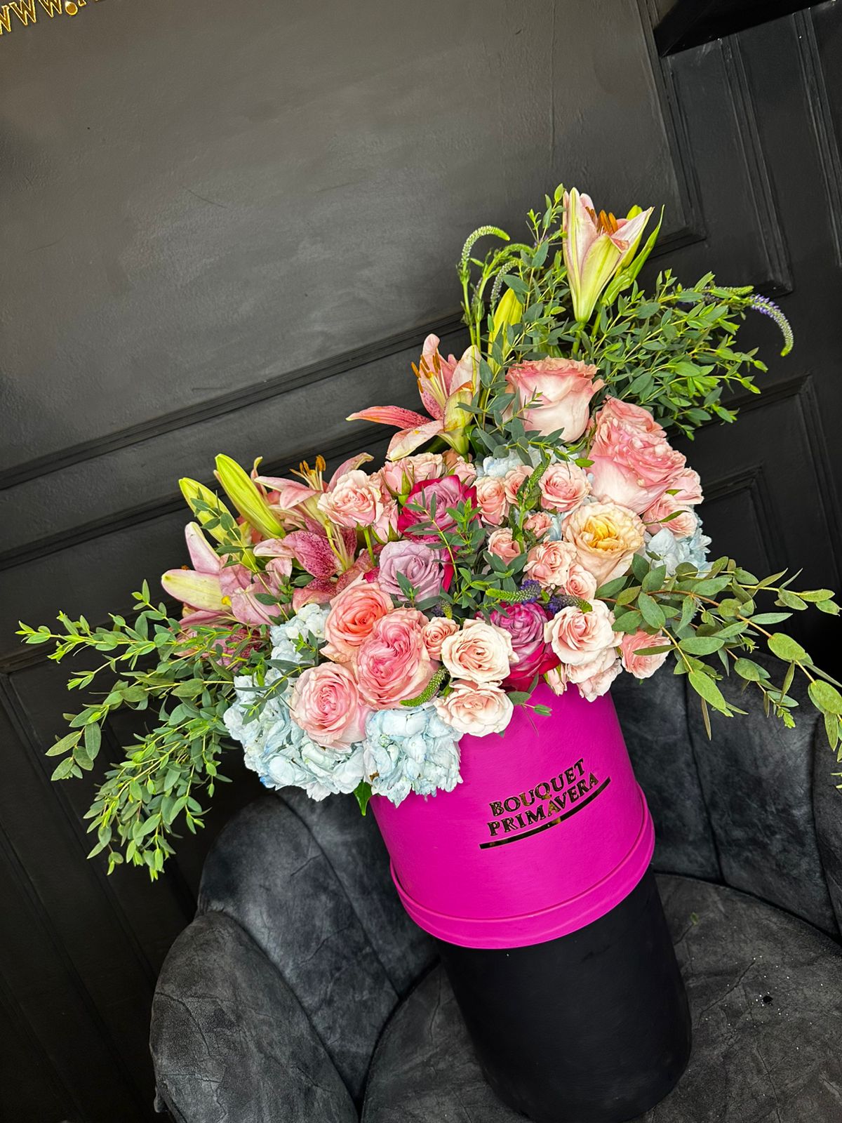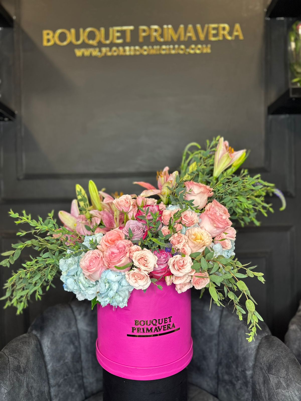 Lindo detalle Bouquet de Ramo de Flores Bogotá, es una Hermosa composición floral de lujo. Tamaño grande. Contiene hasta 50 tallos de flores surtidas que evocan amor, frescura, ternura y admiración.
